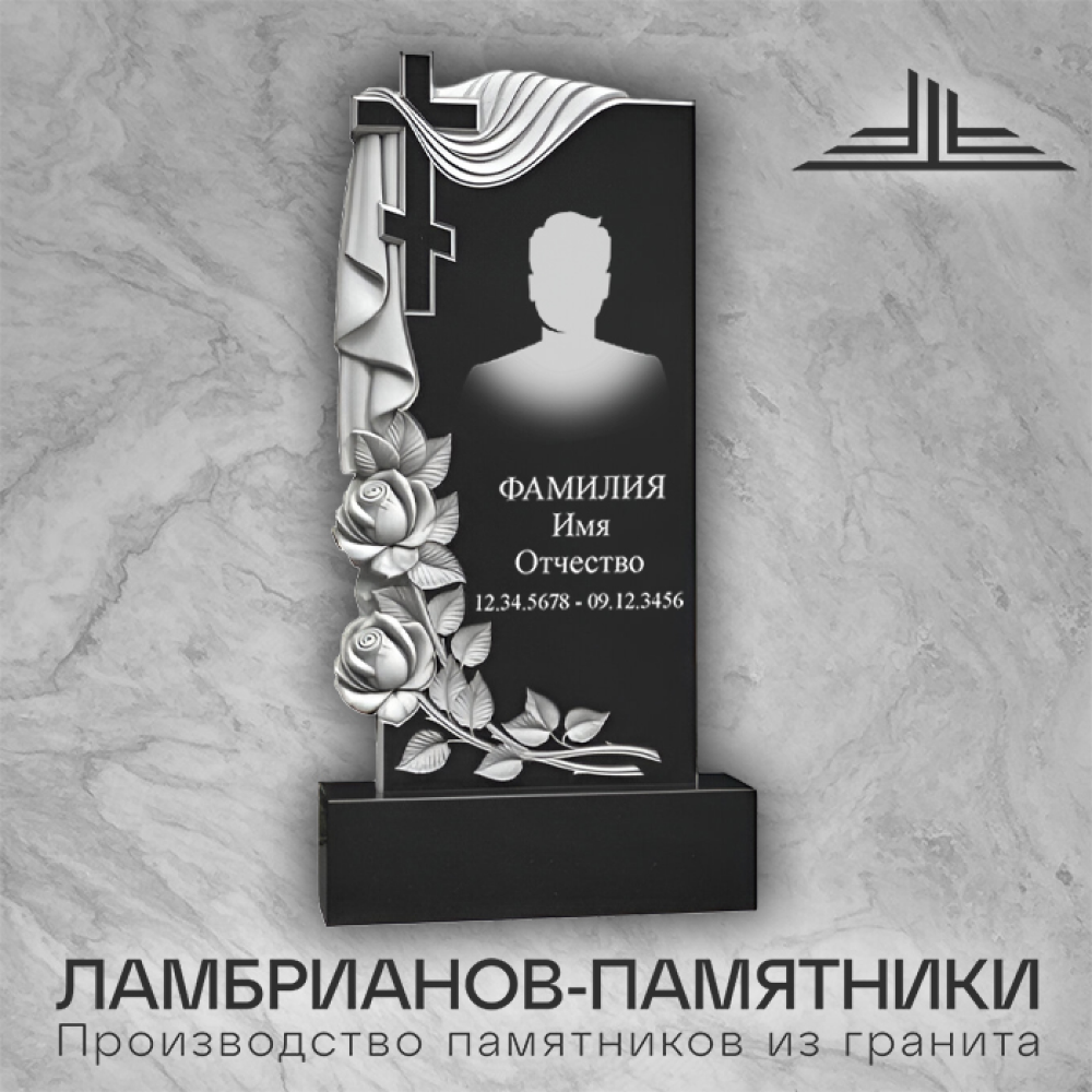 В цену входит: стела, постамент, цветники. Форма резная. Идеален для любого бюджета.